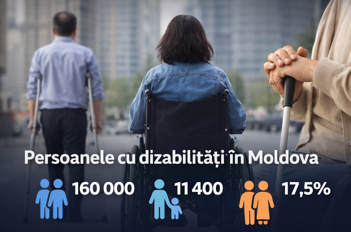 În Republica Moldova, aproximativ 7% din populație trăiește cu o dizabilitate. Asta înseamnă 160 de mii de persoane, dintre care 11 400 sunt copii. Dincolo de cifre, vorbim despre oameni care în fiecare zi se confruntă cu bariere economice, sociale și profesionale. Datele oficiale pentru anul 2024 arată clar: incluziunea rămâne mai mult un obiectiv decât o realitate.